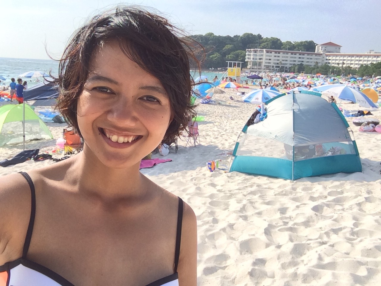 I was so sleepy when we got here, but after I went to the tip of the border, I was so excited and want to swim badly hahaha